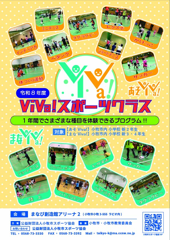 詳しくはココ→[PDF]令和8年度ViVa!スポーツクラスリーフレット(含申込書)