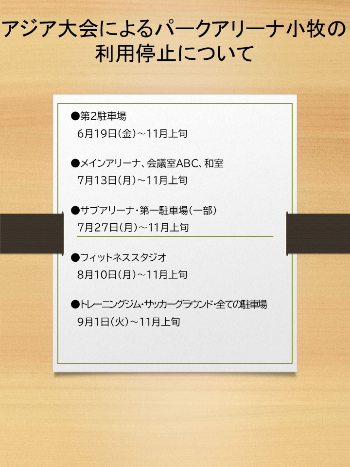 アジア大会開催によるパークアリーナ小牧の利用制限について